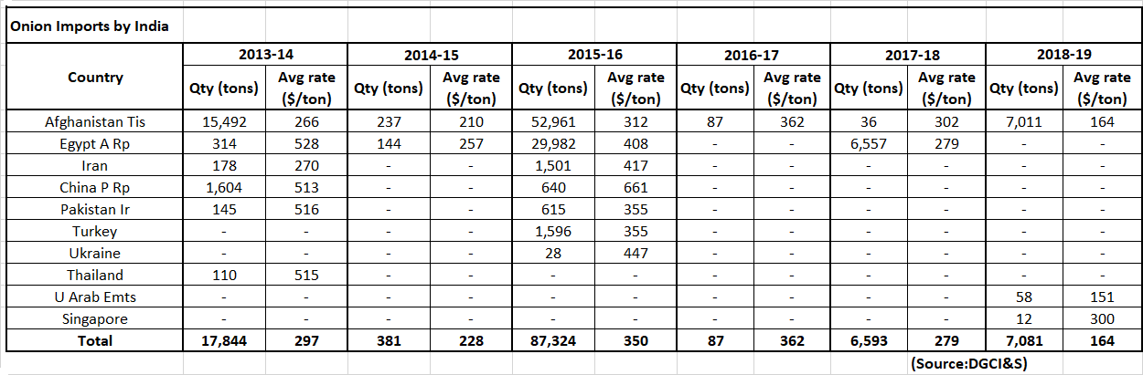 The table above depicts the onion production in major onion-growing countries. China is the largest onion producing country closely followed by India at second position. China’s production approached 24 million tons in 2018-19 while India’s production in the same year was around 22.07 million tons. Egypt, USA, Iran, Turkey, Russia and Pakistan are the other major producing countries. |